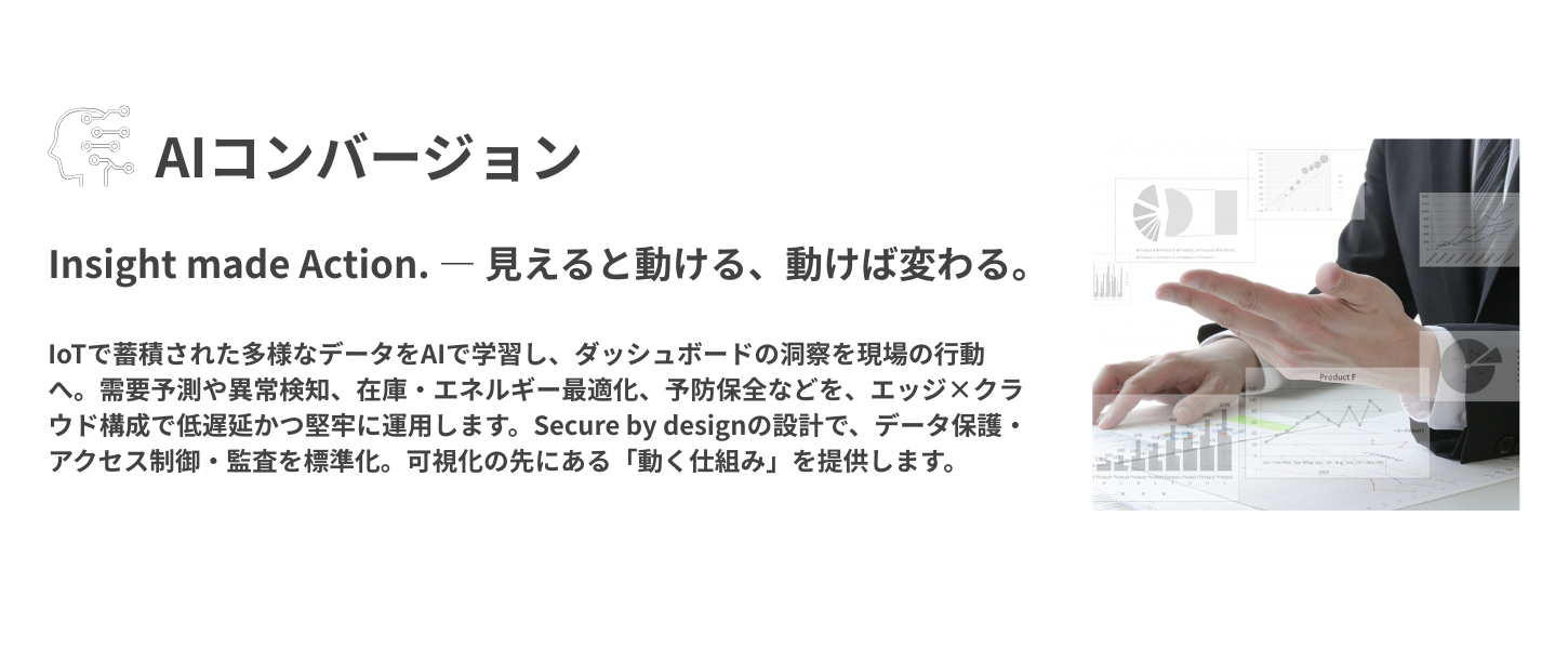 事業継続性と拡張性を両立し、現場課題の解像度を上げ、意思決定のスピードと品質を高める——それが私たちのIoTです。